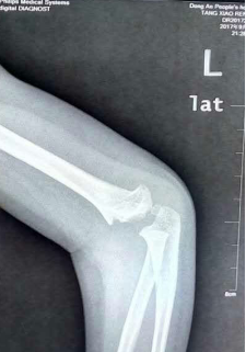 3岁男性患儿,暑假在家里玩耍时,不小心摔伤致左肱骨髁上粉碎性骨折。父母立即带患儿到当地医院就医,手法复位石膏外固定,但骨折位置仍较差,医生建议手术治疗。父母十分紧张,担心开刀会留疤,不好看。当地医院建议转市中心医院。患儿收入院后,北院骨科二区黄军铭主任率队讨论,为患儿制定严密的手术步骤及术前准备,次日即为患儿实施了三维手法闭合复位经皮克氏针内固定手术。手术非常顺利,共用时30多分钟,术中透视见骨折复位准确,对位对线良好,克氏针位置良好。术后患儿父母悬着的心终于放下,不停地向黄军铭主任真诚道谢。手术后,患儿恢复很快,术后第3天即办理了出院手续。