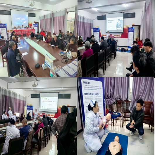 活动现场,麻醉科副护士长杨洛云以《麻醉与您共同守护健康》为题,细致讲解麻醉在手术中的重要作用,帮助村民走出“麻醉只是手术打一针”的认知误区。主管护师饶艳群带来《无痛诊疗》科普,结合实际案例介绍无痛诊疗的技术优势与安全保障,传递舒适化医疗理念。主管护师唐琼艳现场演示海姆立克急救法与心肺复苏术,手把手指导村民操作,确保大家掌握关键急救技能。